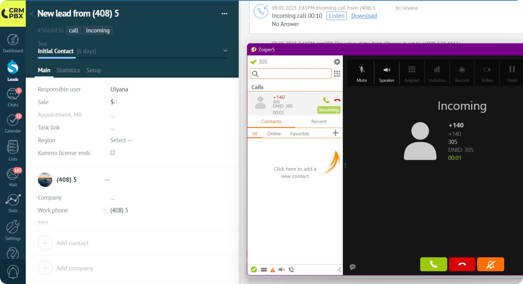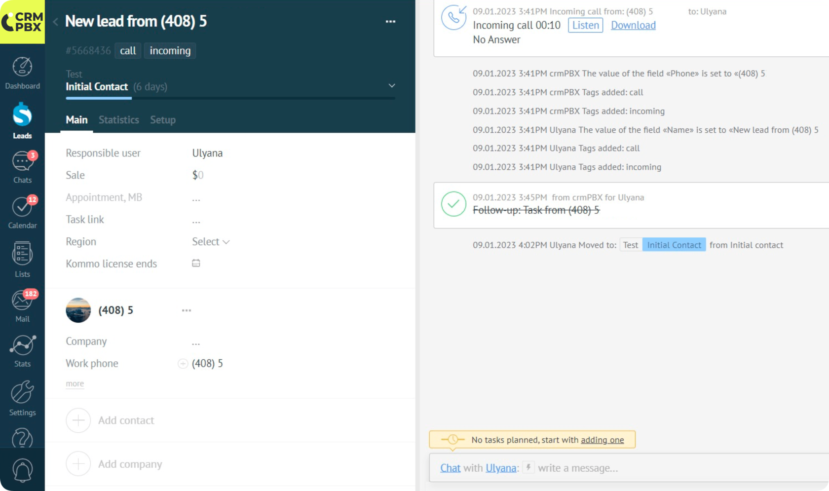 Cada chamada ou SMS recebida cria um lead correspondente no sistema CRM. Além disso, a fonte do lead recebido é-lhe automaticamente enviada para que possa identificar a fonte do lead.