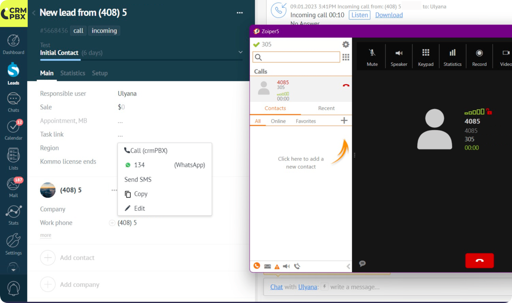 Faça uma chama diretamente do seu CRM. É a maneira mais eficiente de chegar rapidamente aos seus clientes. No seu sistema CRM, pode optar por ligar automaticamente aos clientes através do sistema sem uma aplicação de terceiros.